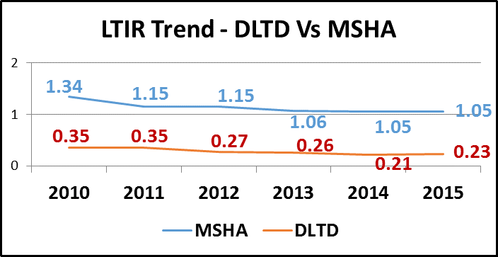 The following table shows Drummond´s Lost Time Incident Rate (LTIR) over the last five years which, when benchmarked with the one reported by the US´s Mine Safety and Health Administration – MSHA, shows that Drummond has had a very good safety performance.